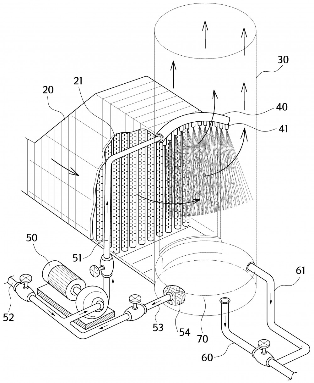 본 발명에 따른 복합화력발전소 배열회수보일러의 튜브박리 비산철 제거용 워터폴 시스템은 복합화력발전소의 가스터빈(10)으로부터 배출되는 배기가스가 상기 배기가스의 열을 회수하기 위한 배열회수보일러(20)를 거쳐 상기 배열회수보일러(20)의 측면에 설치되는 연돌(30)의 유입구(31)를 통해 배출되고, 상기 배기가스가 유입되는 연돌(30)의 유입구(31) 상측에는 워터폴 분사용 상부 노즐헤드(40)가 설치되며, 상기 연돌(30)의 하부에는 상기 워터폴 분사용 상부 노즐헤드(40)에 구비되는 노즐을 통해 워터커튼을 형성하면서 낙하하는 물을 수용하기 위한 하부 저수조(70)가 구비되고, 상기 워터폴 분사용 상부 노즐헤드(40)에 물을 공급하기 위한 물공급펌프(50)가 구비되어 상기 물공급펌프(50)를 통해 공급되는 물이 상기 워터폴 분사용 상부 노즐헤드(40)를 통해 워터커튼을 형성하여 상기 배열회수보일러(20)의 핀튜브(21)에서 박리되어 배출되는 비산철을 연돌(30)에서 제거하는 것을 특징으로 한다.